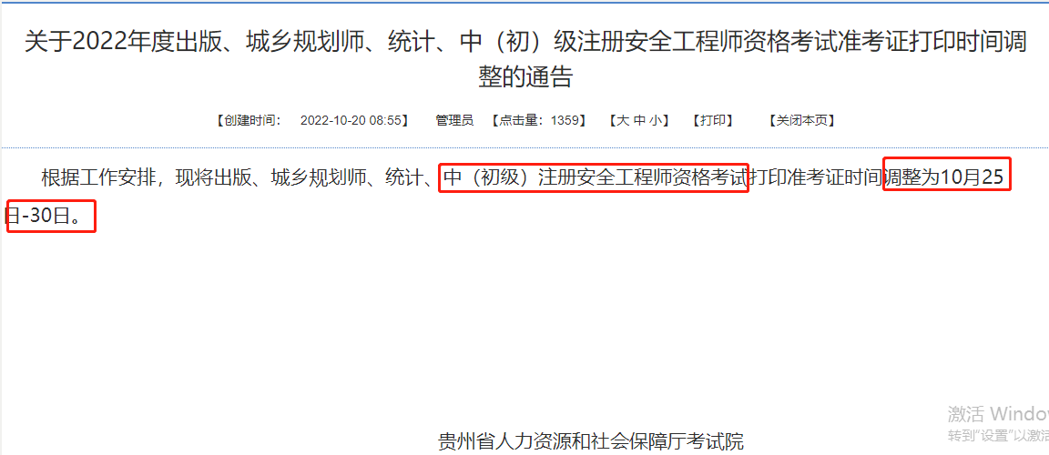 关于推迟2022年度中级注册安全工程师职业资格考试江西考区准考证打印时间的公告