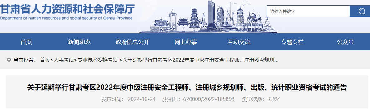 【摘要】官方正式公告!甘肃2022年中级注册安全工程师考试时间调整
