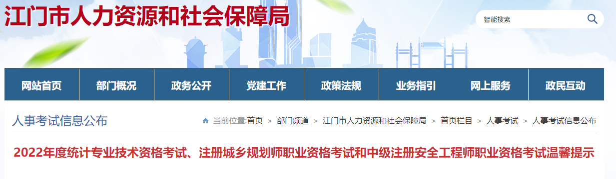 2022年度统计专业技术资格考试将于2022年10月30日举行,2022年度注册城乡规划师职业资格考试和2022年度中级注册安全工程师职业资格考试将于2022年10月29-30日举行。江门市人事考试院敬请江门考区广大考生注意以下事项: