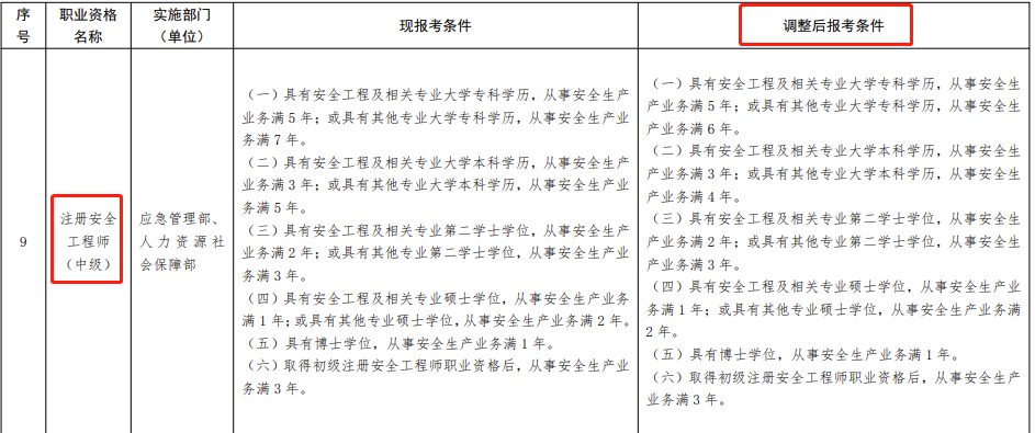 部分准入类职业资格考试工作年限要求调整方案.pdf(以下为部分截图,点击查看完整表格)