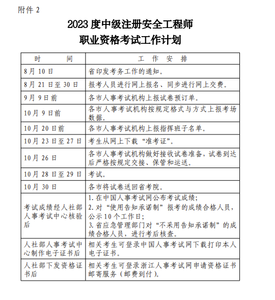 根据人社部人事考试中心《关于2023 年度中级注册安全工程师职业资格考试考务工作的通知》(人考中心函〔2023〕47号)和《关于印发专业技术人员职业资格考试报名证明事项告知承诺制工作规程》(人考中心函〔2021〕1 号)要求,现结合我省实际,将此项考试有关考务事项通知如下。