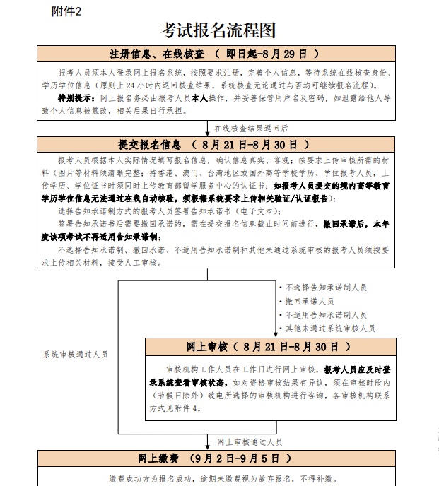 3.网上缴费时间为 2023 年 9 月 2 日至 9 月 5 日。完成报名提交并通过审核的人员可进行网上缴费,缴费成功方为报名成功。报考人员报名成功后,已缴费用不予退还。