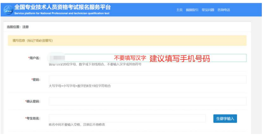 3、根据注册提示填写相关信息,用户名建议填写手机号码