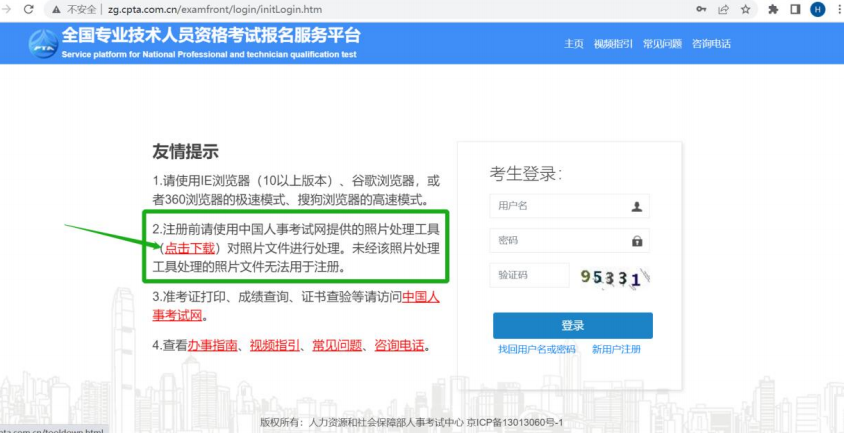 报名开始前完成 2 步,方可进行网上报名:(1)需要完成注册(2)需要完成照片处理