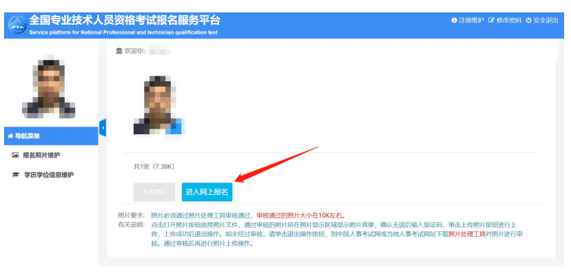 以上操作流程已经处理好照片,现在需要上传至报名系统里面,往下看