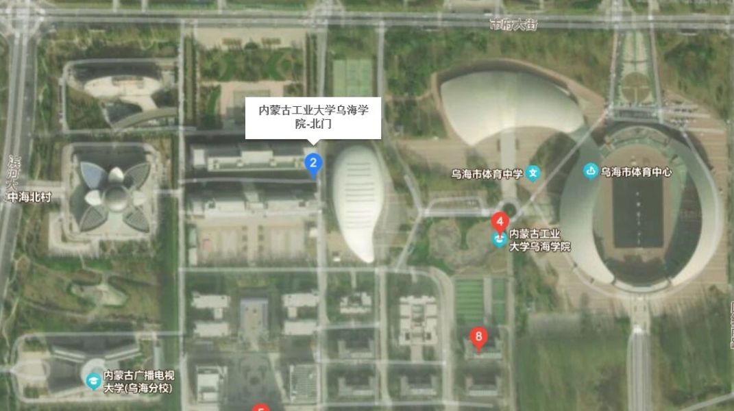 乌海职业技术学院(内蒙古自治区乌海市海勃湾区和谐路与市府大道交叉口正南方向271米--北门入口)