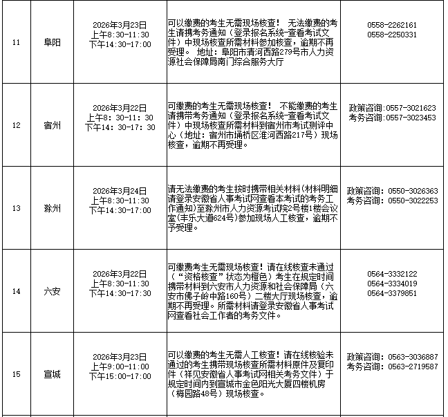 2026年度社会工作者职业资格考试安徽考区现场人工核查安排