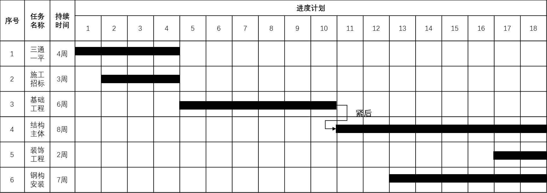 横道图可将最重要的逻辑关系标注在内,A说法错误;该横道图进度计划的总工期为18周,B说法错误;钢构安装的持续时间为7周,而横道长度为6周,C说法正确;没有通过严谨的进度计划时间参数计算,不能确定计划的关键工作、关键路线与时差,D说法错误。