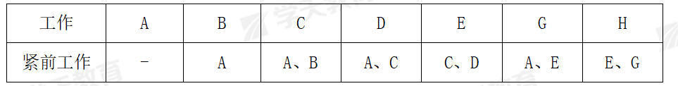 表格“紧前工作”行中有工作A的工作,为A工作的紧后工作。