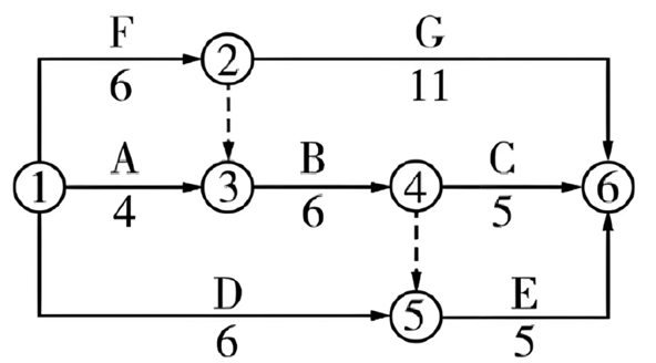 关键线路为①→②→⑥;①→②→③→④→⑤→⑥;①→②→③→④→⑥,共三条。