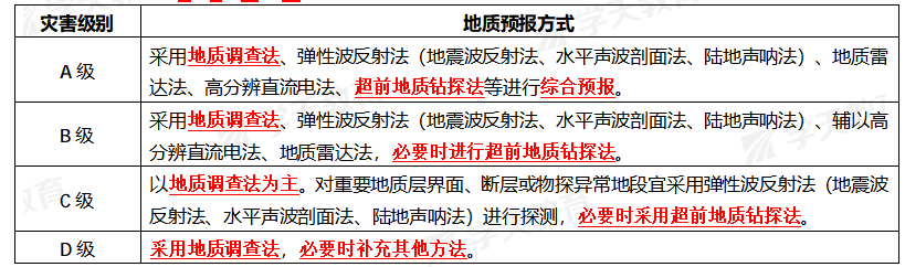 根据地质复杂程度,包括岩溶发育程度、涌水涌泥程度、断层稳定程度、地应力影响程度和瓦斯影响程度,地质预测预报分为A、B、C和D四个等级。