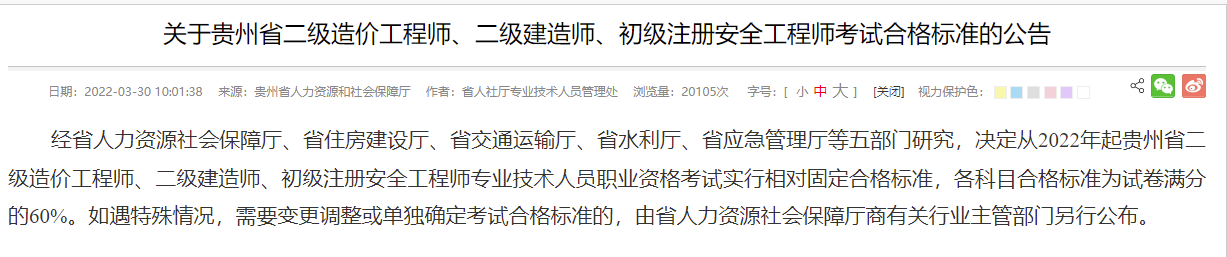 贵州二建合格标准:法规:60分;管理:72分;实务:72分