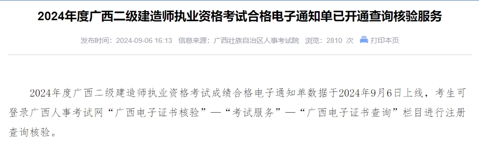 【摘要】2024年崇左二级建造师合格电子通知单已开通查询核验服务