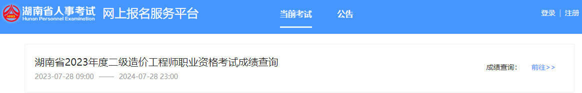 湖南省人事考试网发布公告:2023年二级造价工程师考试成绩可查询,考生登录成绩查询入口:湖南省人事考试网上报名服务平台(http://rsks.onlydwy.com/current/exams),输入证件号码及姓名,即可查询本年度二级造价工程师职业资格考试成绩。