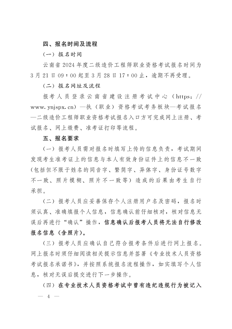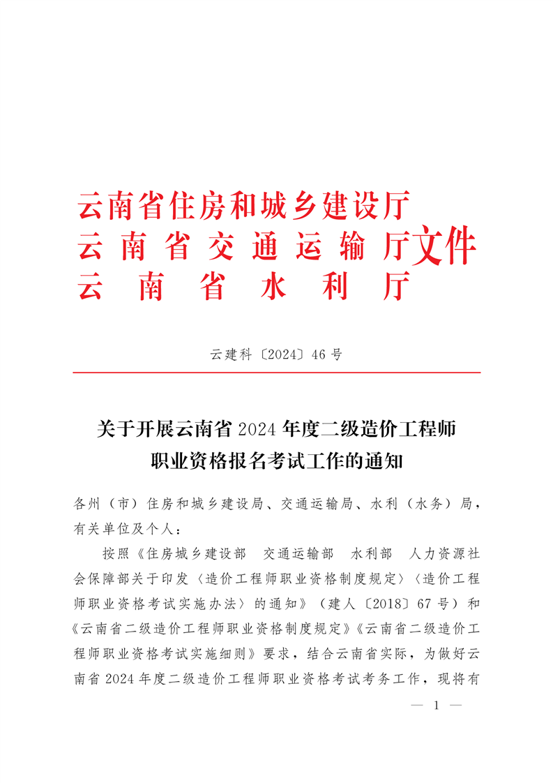 关于开展云南省2024年度二级造价工程师职业资格报名考试工作的通知
