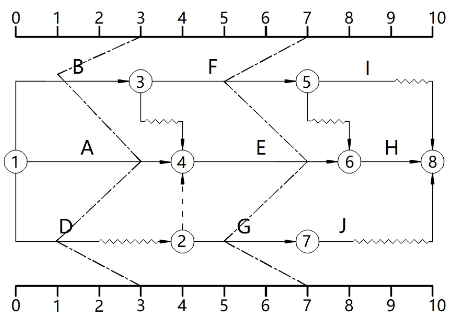 某工程进度计划执行到第3周和第7周的前锋线如下图所示,下列描述错误的是( )。