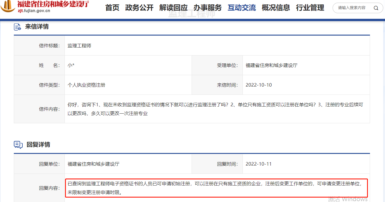 福建监理工程师电子资格证书的人员已可申请初始注册