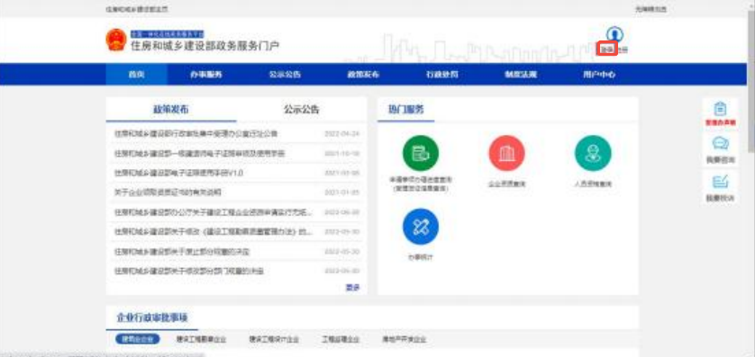 1、在“住房和城乡建设部政务服务门户”页面,点击【登录】进入登录页面。