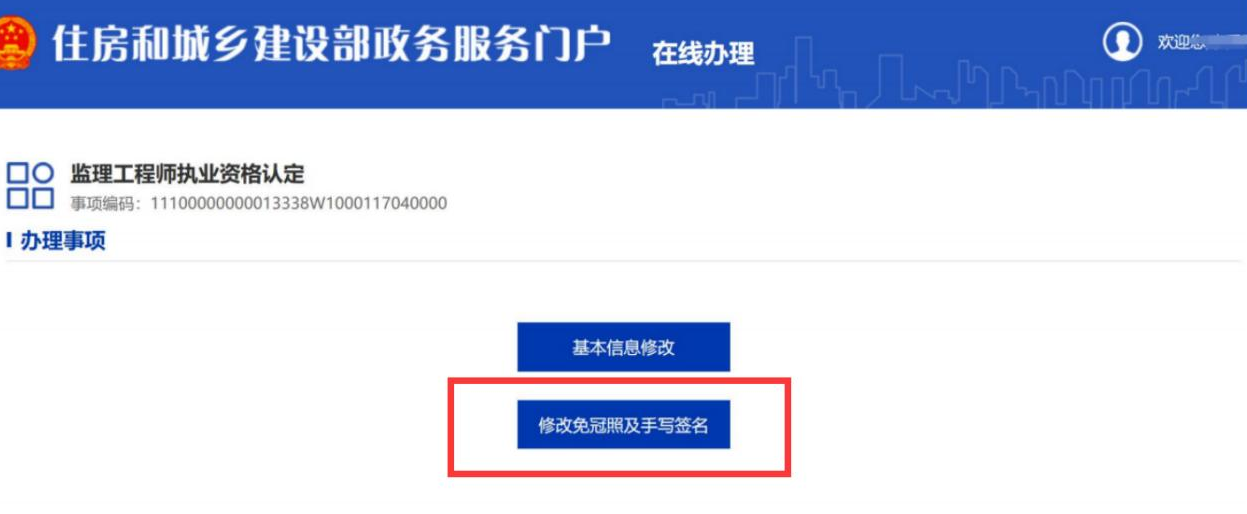 点击【修改免冠及手写签名】,进入证照信息修改页面。
