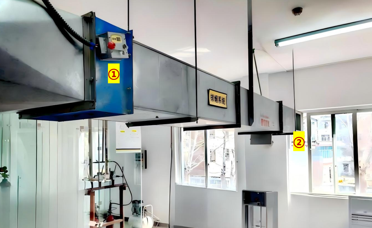 (确定是排烟阀后)指着②回答排烟阀在排烟口里面