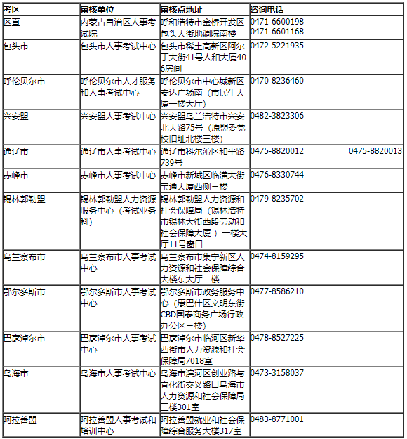 附件:区直及各盟市考区资格审核部门联系方式