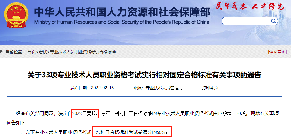 经商有关部门同意,决定自2022年度起,将实行相对固定合格标准的专业技术人员职业资格考试由17项增至33项。现就有关事项通告如下: