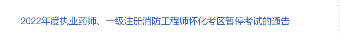 为全力做好疫情防控工作,根据新冠肺炎疫情防控工作需要,结合当前我市疫情形势,经研究,决定怀化考区暂停原定于11月5日、6日举行的2022年度执业药师、一级注册消防工程师考试。