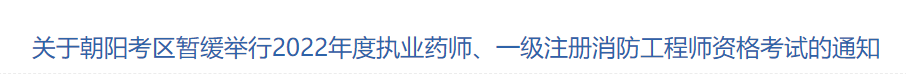 根据朝阳市新冠肺炎疫情防控指挥部2022年11月1日发布的关于延长静态管理时限的通告,为保障考生的生命安全和身体健康,原定于11月5日、6日,在朝阳考区举行的2022年度执业药师、一级注册消防工程师资格考试暂缓举行,望广大考生周知。