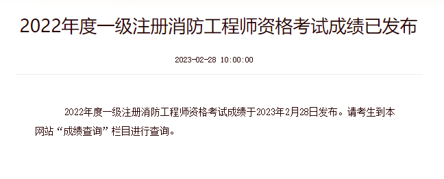 【摘要】2022年一级消防工程师考试成绩已发布
