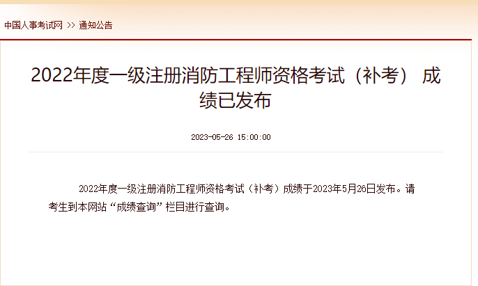 【摘要】2022年度一级注册消防工程师资格考试(补考) 成绩已发布