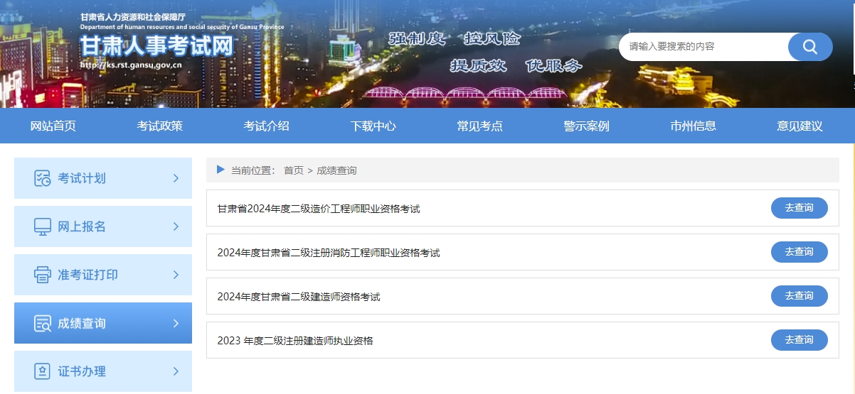 2024年度甘肃省二级注册消防工程师职业资格考试成绩于2025年2月10日公布,请考生登录甘肃人事考试网(http://ks.rst.gansu.gov.cn)“成绩查询”栏目进行查询。