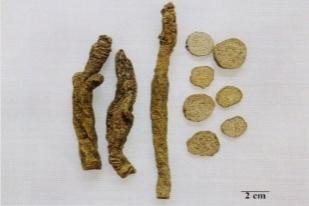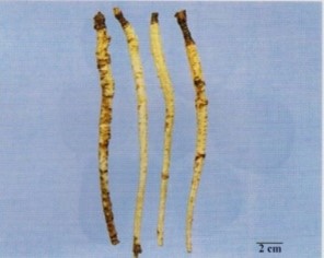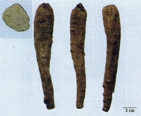 下列图示药材中,表面黄白色或淡棕黄色,体轻,质松泡,易折断,断面不平坦,黄白色,多裂隙的药材是( )