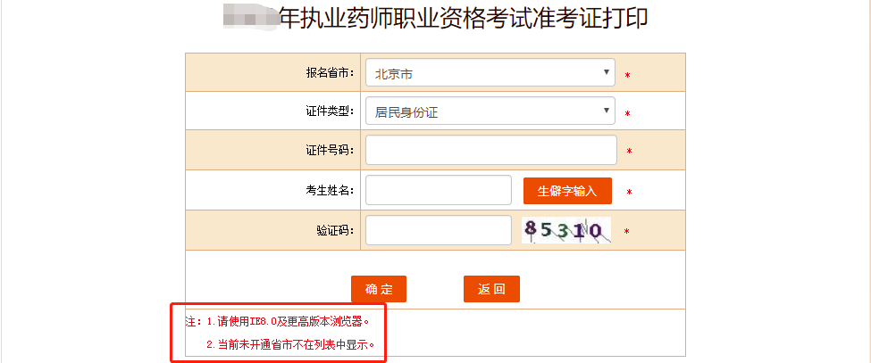 按照下图依次进行选择及填写:选择省份>>选择证件类型>>填写证件号码>>填写考生姓名>>输入验证码>>点击确定>>。