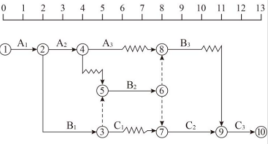 一建《管理》 重点试题:考点45:双代号时标网络计划(★★★)