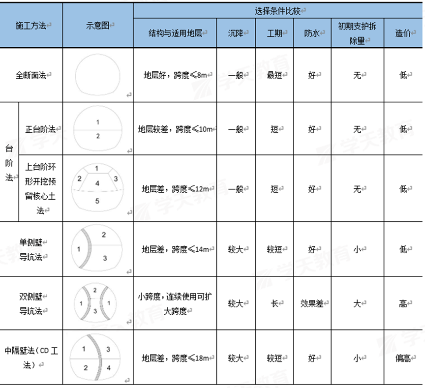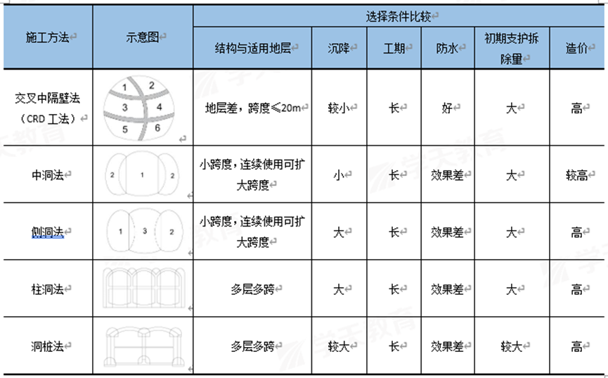 带“洞”字的工法以及双侧壁导坑法防水效果差。