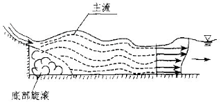 本题考查的是能量转换和消能方式。面流消能利用鼻坎将下泄的高速水流的主流挑至下游水面,在主流与河床之间形成巨大的底部旋滚,旋滚流速较低,避免高速水流对河床的冲刷。