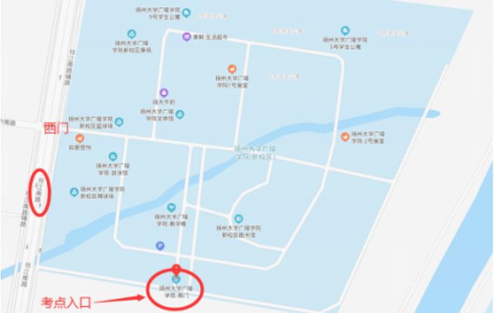 友情提示:请从扬州市职业大学西门(国展路,国展中心对面)进入,由于西门离考场有一段距离,请考生尽量提早到达考场所在教学楼,可乘坐101路公交车。