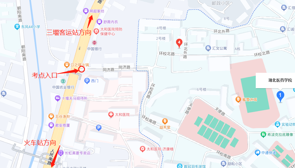 考点入口:十堰市茅箭区人民南路医学院西门(太和医院急诊科大门旁)