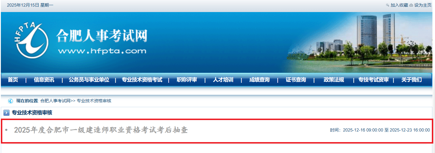 关于开展合肥考区2025年度一级建造师职业资格考试成绩合格人员践诺情况抽查工作的通知