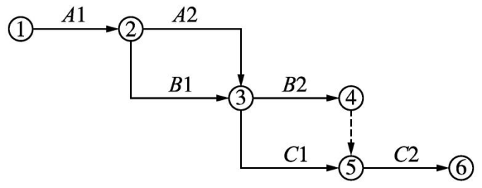 【解题思路】工作A2和工作Bl代号均为②-③,应增加虚工作加以区分,故选D。