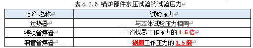 本题考查锅炉水压试验,详见表4.2.6。