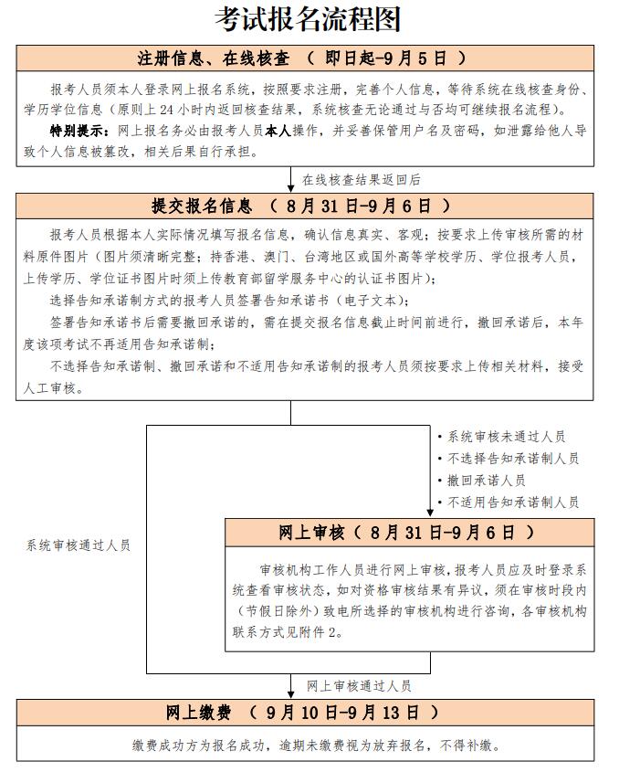 1.提交报名信息时间为2022年8月31日至9月6日。注册信息原则上24小时内返回核查结果,建议报考人员提前完成用户注册及学历、学位信息补充,以免错过报名。