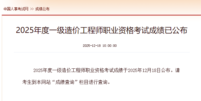 【摘要】速查!2025年一级造价工程师资格考试成绩已公布