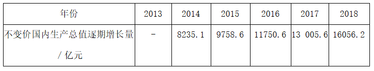 某国2013−2018年不变价国内生产总值资料如下,则某国2013−2018年不变价国内生产总值累计增加( )亿元。